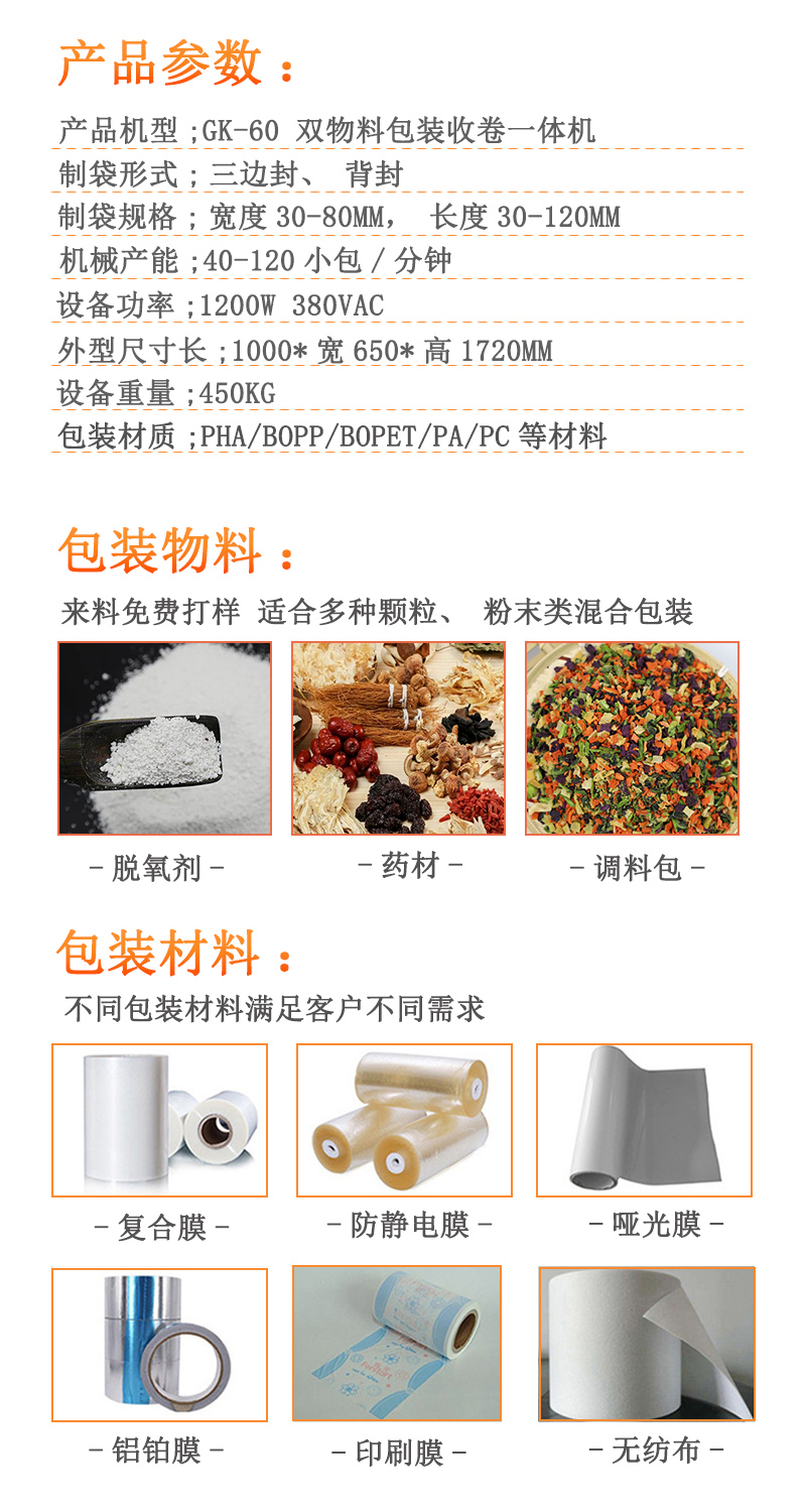 生產(chǎn)制袋,封口,包裝,打印日期一次性完成。